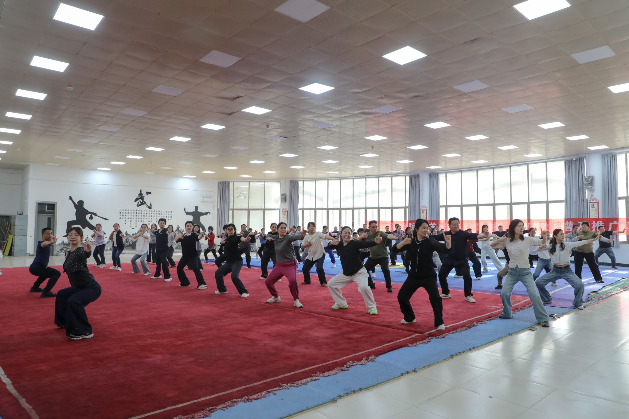 为进一步提高机关广大教职工身体素质和健康意识,4月14日下午,机关党委在学体育与健康学院武术套路馆正式启动“健康机关”八段锦普及推广活动,机关教职工共计100余人参加。